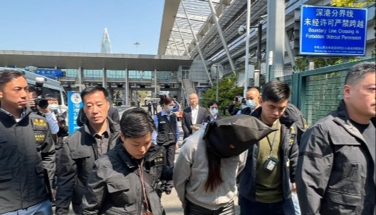 內地執法人員昨日(5)於深圳灣口岸,將女疑犯移交香港警方。香港警方提供 被捕的29歲女疑犯早前潛逃內地後,被內地執法人員截獲。內地執法人員昨日(5)於深圳灣口岸,將女疑犯移交香港警方。西九龍總區重案組繼續調查案件。 消息指,該名女疑犯姓潘,洋名Irene。她涉嫌向死者前夫鄺港智,介紹遊艇公司職員林舜。據報,潘女為一名“KOL”,活躍於社交平台,有逾3萬名粉絲。翻查其過往的社交平台帖文,曾與不少名人合照,包括古天樂、關楚耀等。 警方昨晚將潘女押至其寓所蒐證,逗留約半小時後離開。(完) 【編輯:孟宜君】