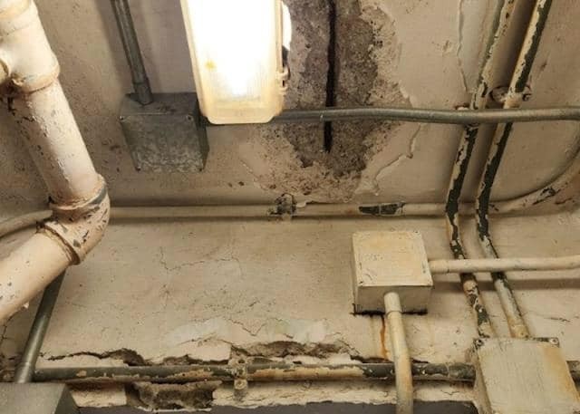 香港新聞網3月9日電 香港繼青山醫院及葵涌醫院出現天花板混凝土剝落事故後,伊利沙伯醫院天花板亦發現有潛在風險。院方已經即時安排維修工程,預料需時一至兩日完成。 近日網上流傳一張伊利沙伯醫院有天花板混凝土剝落、露出生鏽鋼筋,牆身混凝土亦出現爆裂的照片。院方今日(9日)回應傳媒查詢時表示,工程部門人員昨日(8日)在醫院各大樓進行全面巡查時,發現一間員工更衣室內的天花板有潛在風險,即時安排進行維修工程。相關照片所見的天花板為工程進行中、混凝土被工程人員鑿開維修的狀況。