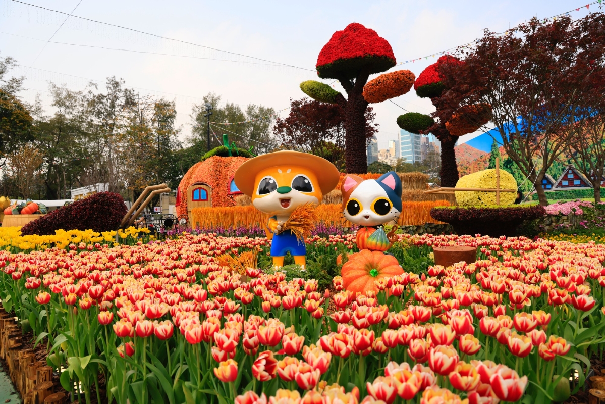 圖片香港中通社記者 曹文毓 攝 場內以春、夏、秋、冬四季為主題的四個花圃,錯落有致,形似花籃的竹編隧道、鮮花扎成的海豚、秋日庭園的楓葉、聖誕的麋鹿……沿著會場中軸線走下來,季節分明裝飾品讓游客仿似經歷四季循環。