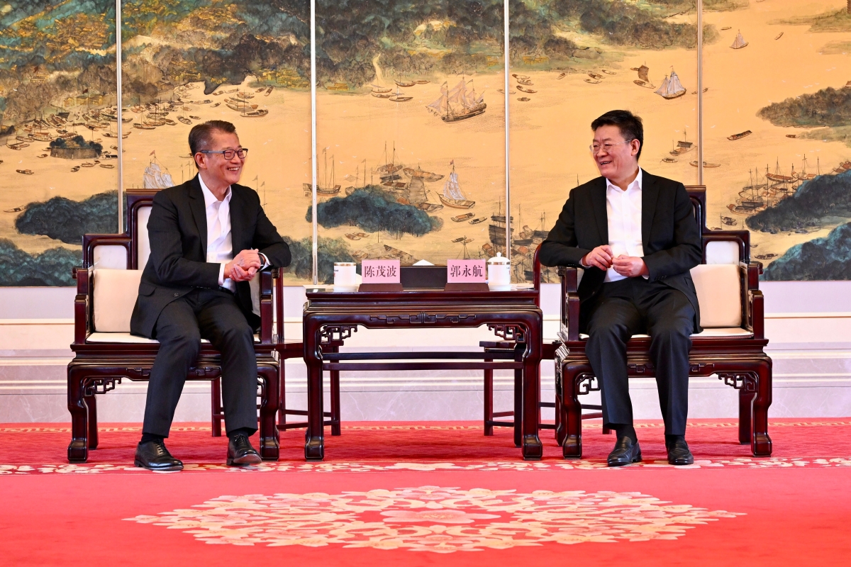 陳茂波(左)到訪廣州市,與廣州市市長郭永航(右)會面