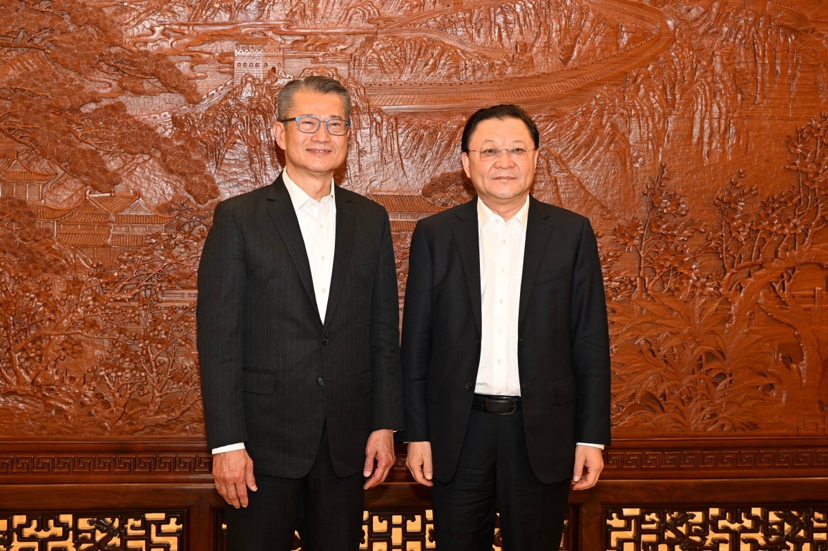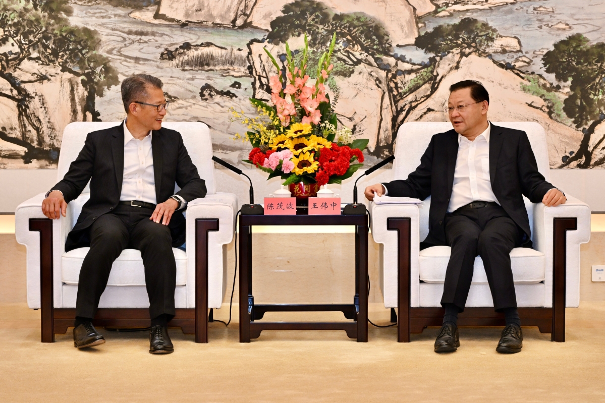 陳茂波(左)到訪廣州市,與廣東省省長王偉中(右)會面。