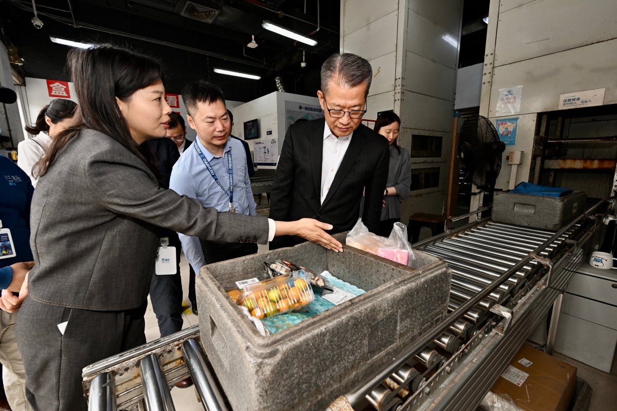 陳茂波(右)到訪廣州市的盒馬網路科技有限公司。 陳茂波此行亦到訪了盒馬網路科技有限公司,了解該公司如何應用大數據、人工智能和物流科技,加速新鮮食品和產品的配送,以及於付款過程中運用人臉識別系統等。 陳茂波亦與在穗的香港青年企業家舉行座談會。這些企業家分別從事金融、文創、科技、時裝、食品、社會服務等領域。在交流中,這些青年創業家談到在內地創業的龐大機遇和發展空間,也提出在創業過程中遇到的挑戰。陳茂波表示,欣賞他們為創業而不懈奮鬥且互相幫助,又指特區政府會繼續支持青年到大灣區發展和創業,並提供力所能及的協助。(完) 【編輯:孟宜君】