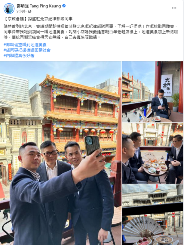 通說:從一頓老胡同早餐說起今晨,正在北京訪問的香港特區行政長官李家超在社交媒體上曬出自己早上在老胡同吃早點的照片,透露自己與駐京辦同事吃了糖油餅、豆腐腦等老北京小吃。 李家超發文說,感謝香港駐北京辦事處同事的努力,讓這次各項拜訪活動得以順利進行。他還問網友有什麼北京美食可以推介。