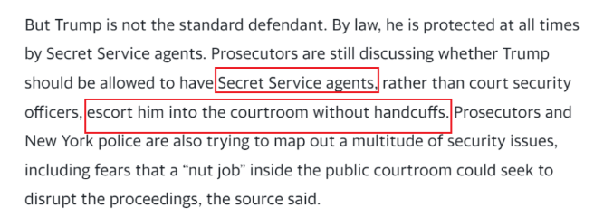 消息指出,萬一特朗普被控,最終將由秘勤局決定他是否被上銬。按照流程,特勤局安保人員將把他送到曼哈頓地區檢察官辦公室采集指紋,然後在地區檢察官偵探小組的辦公室裡拍攝面部照片。 如果自首,按照慣例,在逮捕程序結束後,特朗普將被直接帶到法官面前提審,他很可能在自己保釋後獲釋。 據知情執法官員表示,他們討論了幾個問題,包括法院的安全、特朗普支持者在法院外舉行示威或集會的可能性,以及反特朗普抗議者舉行反示威的可能性。兩個群體還有可能發生衝突。有人擔心國會大廈事件或會重演。 美國紐約市當地時間19日下午,《worldjournal》記者在川普大廈附近觀察,紐約市第五大道交通及秩序一切正常。 一切還在未知當中,明天答案即將揭曉。 (完) 【編輯:錢林霞】