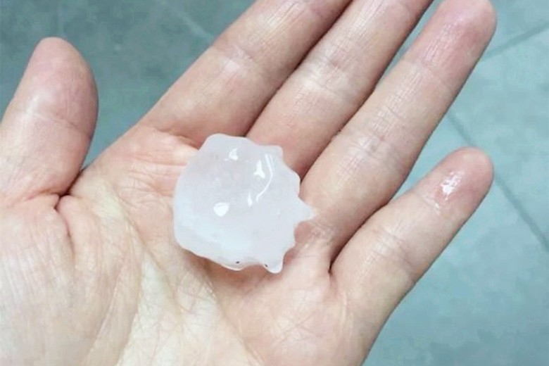 2014年3月30日下午8時40分左右在香港荃灣拾獲的冰雹。圖自香港天文台 【編輯:許豐悅】