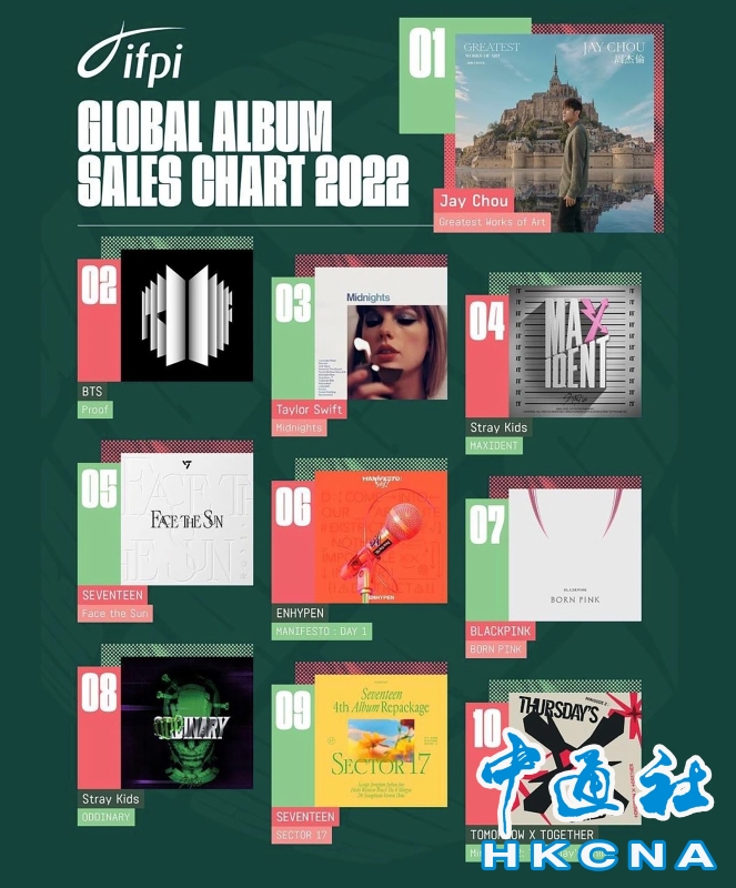 台灣歌手周杰倫以《最偉大的作品》專輯榮登全球第一分享到: