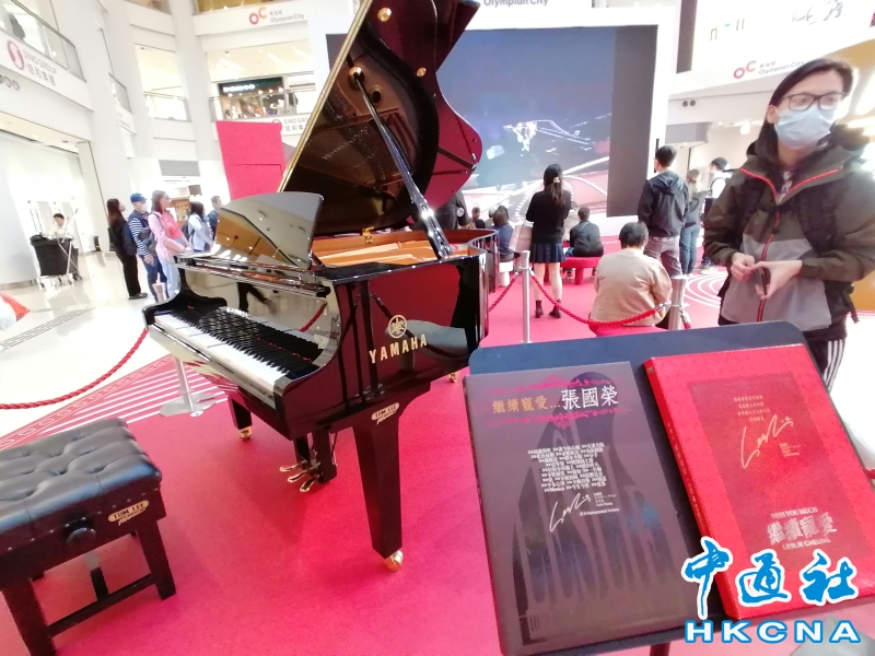 香港奧海城於3月23日至4月2日舉辦“Timeless Leslie Encounter”活動,透過20個“相遇”的故事紀念這位傳奇巨星。奧海城徵集由大眾所遞交的“與哥哥相遇”的照片,包括與張國榮的合照、張國榮的唱片、電影及演唱會戲票、周邊紀念品等等,目標收集到3,000張相片,將會組合馬賽克相片,於現場430吋大屏幕上以馬賽克相片呈現。現場還有由一眾歌迷投票選出最具代表性的經典作品組成的霓虹燈打卡牆。圖為場內設有一座自動演奏的三角鋼琴,循環演奏8首經典金曲,包括《追》、《風繼續吹》、《共同渡過》等等,並邀請音樂人以琴聲向張國榮致敬。香港中通社圖片