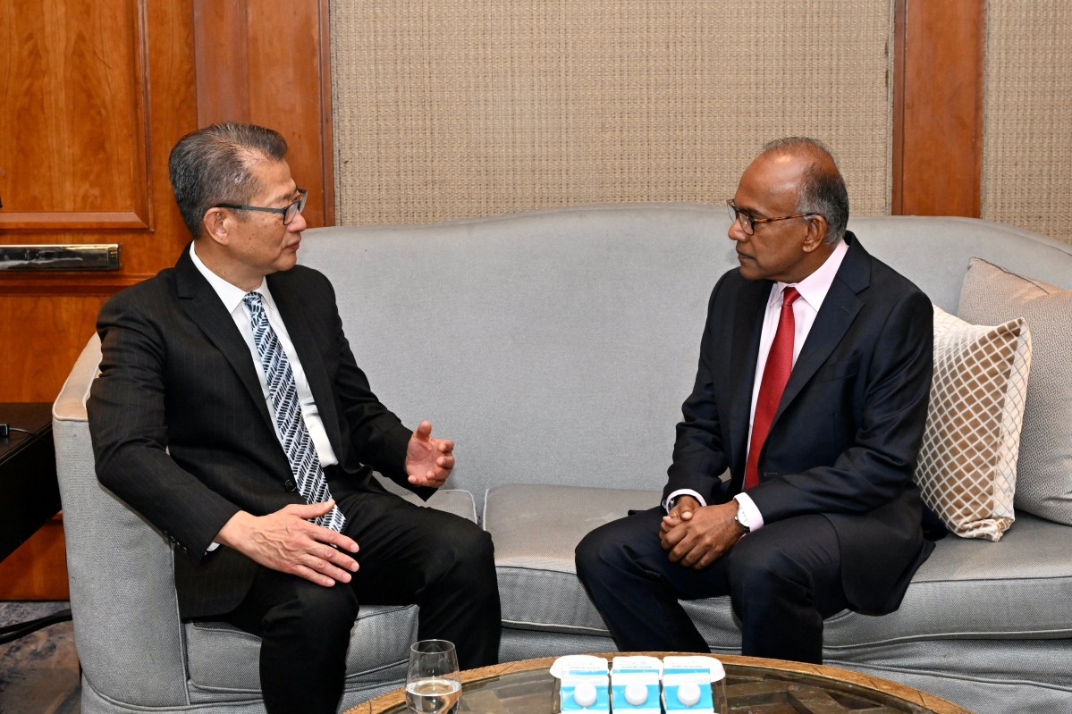 陳茂波(左)與新加坡內政部長兼律政部長尚穆根(右)在出席南華早報2023年“中國年會:東南亞”前會面。 陳茂波昨日下午禮節性拜會了中華人民共和國駐新加坡大使館公使張徐民,向他介紹香港的最新情況。他也與一家經營私募基金和家族辦公室業務的公司代表會面。 另外,陳茂波亦有前往新加坡國立大學,在商學院和李光耀公共政策學院聯合舉辦的研討會上演講,向學生介紹香港的獨特地位和優勢,並與學生交流對區域經濟合作和發展的看法。他指出,香港與東盟國家之間維持緊密的經貿和文化聯繫,在助力整個區域的疫情後經濟復蘇和發展,有巨大的合作空間。中國和東盟市場體量龐大,香港與新加坡作為高增值的服務平台,可以共同探索當中的機遇。 陳茂波昨晚與新加坡主要商會成員晚宴,並與在當地工作的香港青年創業者和行政人員見面,了解他們的生活和工作情況。(完) 【編輯:孟宜君】