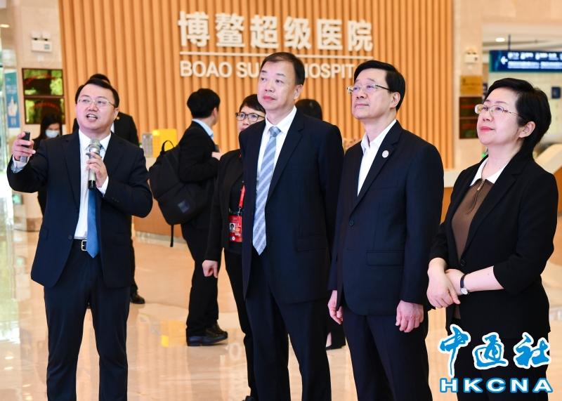 •   3月29日,前來海南參加博鰲亞洲論壇2023年年會的香港特別行政區行政長官李家超一行參觀考察了博鰲樂城國際醫療旅遊先行區。該園區是海南自貿港重點園區,目前有四家港資企業投資。圖為李家超參訪海南博鰲超級醫院。 香港中通社圖片