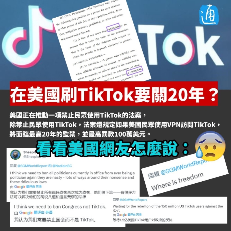 在美國刷TikTok要關20年?看看美國網友怎麼說……香港新聞網3月31日電 美國正在推動一項禁止民眾使用TikTok的法案,除禁止民眾使用TikTok,法案還規定如果美國民眾使用VPN訪問TikTok,將面臨最高20年的監禁,并最高罰款100萬美元。 出於“某些”原因,美國主流媒體對此并未做過多報道,但卻并不妨礙這一話題在海內外社交媒體上成為熱搜。美國網友對此表示相當憤慨,有網友甚至留言:“等待1.5億美國TikTok用戶的反抗。”有中國網友則調侃該法案“很美式自由。”