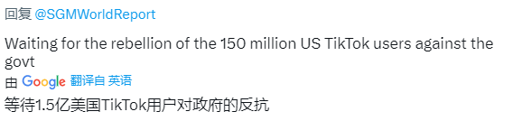 更有美國網友稱:“等待1.5億美國TikTok用戶對(美國)政府的反抗。”