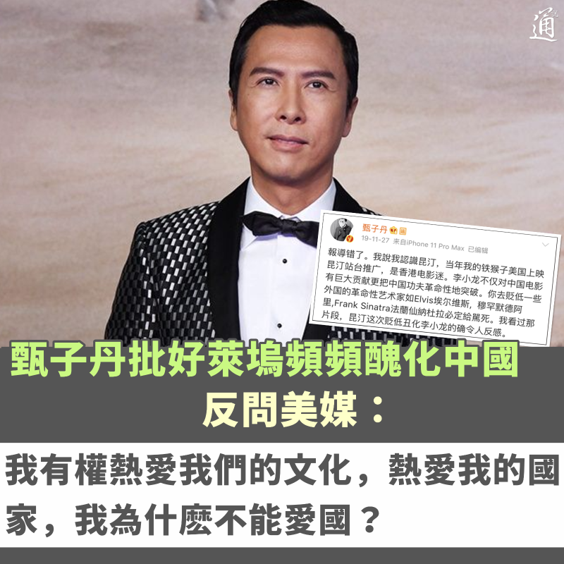 甄子丹批好萊塢頻頻醜化中國 反問美媒:為什麼我不能愛國?分享到: