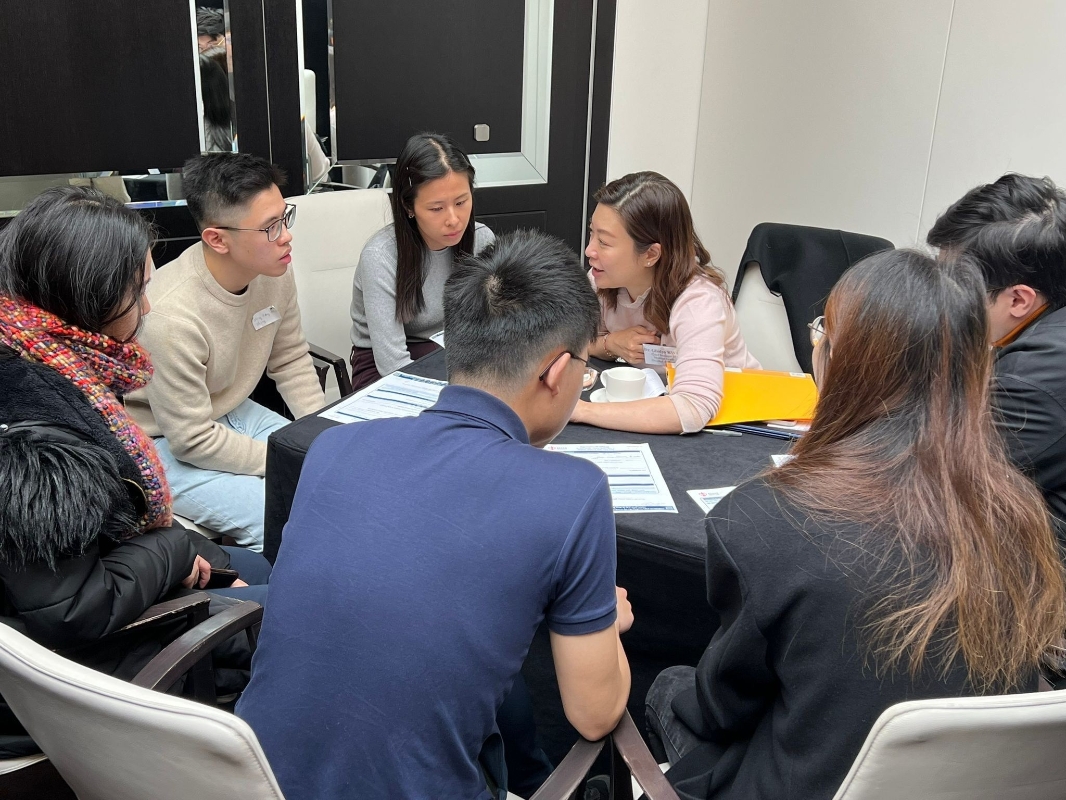 醫院管理局總行政經理(醫療職系)關慧敏醫生(右三)與醫學生交流,介紹香港公立醫院的工作環境、工作前景及其他生活上的安排。 醫管局行政總裁高拔陞醫生指出,很高興有機會在倫敦,親身及在線上與200多名來自香港的醫學生及執業醫生見面。他們的反應十分正面,對回港工作非常有興趣。這次港府展示了最大的誠意,希望他們認真考慮,回港服務病人。他又說,醫管局會有專人與是次活動的參加者保持聯繫,並會盡快核實有意回港工作者的資格及完成相關的審批和聘用程序,並協助他們辦理回港工作的相關手續,以及提供其他所需支援,務求讓他們無後顧之憂,可以盡快投入醫管局的工作。