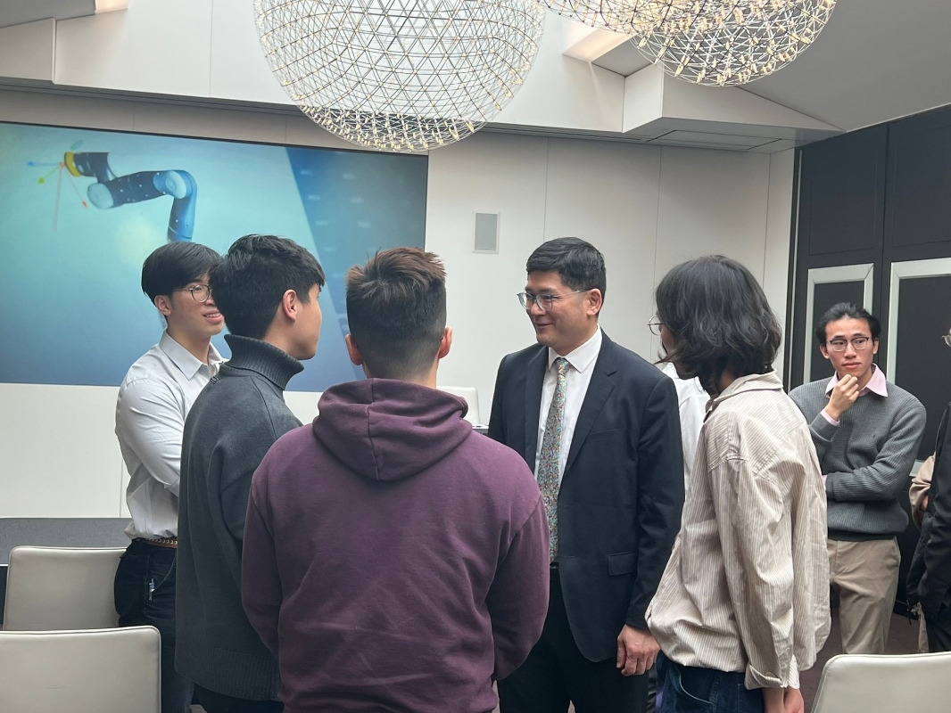 醫院管理局行政總裁高拔陞(右三)與醫學生交流,醫院管理局會安排專人盡快核實有意回港工作者的資格及完成相關的審批和聘用程序。 【編輯:孟宜君】