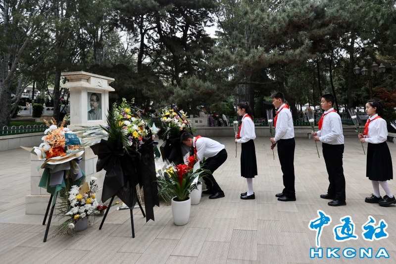 •   4月3日,北京石景山區清明祭英烈儀式在八寶山革命公墓烈士陵園舉行。圖為學生向革命先烈獻花。 香港中通社圖片