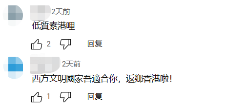 “同路人”評論 “西方文明國家不適合你。”也有“手足”聽不得唱衰英國的言論,陰陽怪氣地建議她回故土香港。 還有“手足”乾脆給“Moon媽在英生活”貼上所謂“低素質港人”的標籤。 然而,對“Moon媽在英生活”的批判還遠不止於此! 近日,更有氣急敗壞的移英“黃絲”專門在社交平台發布帖文,隔空批判“Moon媽在英生活”。