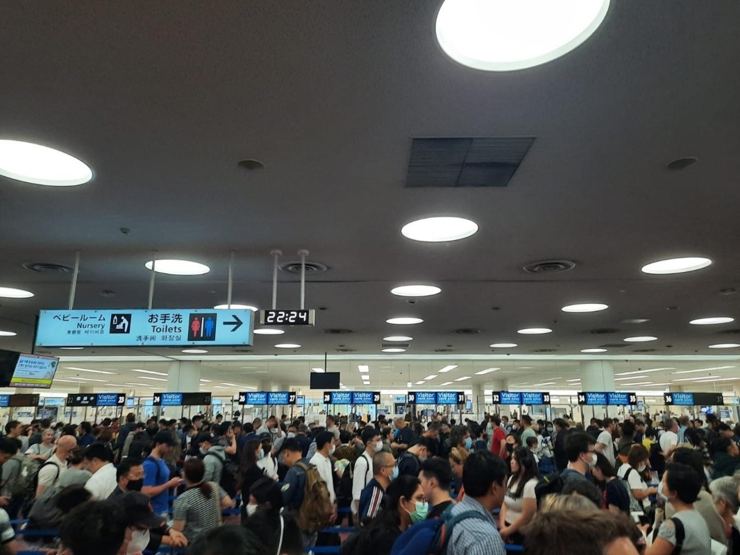 (高鐵西九龍站 香港中通社資料圖) 至於是否擔心染疫,他相信,只要做好防護措施,就無需擔心。 此外,香港國際機場今早亦擠滿旅客,有航空公司櫃位出現排隊人龍,不少旅客等候辦理登機。 當中不少遊客計劃赴日旅遊。有家長表示,近期入境日本的旅客較多,預計需等候2至3個小時才能完成入境手續,已為子女準備零食。 據此前報道,日本機場關員人手不足,有香港旅行社團員抵日後排隊數小時才完成入境手續。 縱橫遊在社交網站上載照片,顯示2日晚香港旅客在東京羽田機場排隊入境的情況。從相片可見,日本入境櫃位大堂擠滿人。縱橫遊執行董事袁振寧表示,近期適逢日本櫻花季,吸引大量旅客,加上機場人手不足,導致東京、大阪等機場入境動輒輪候兩小時。