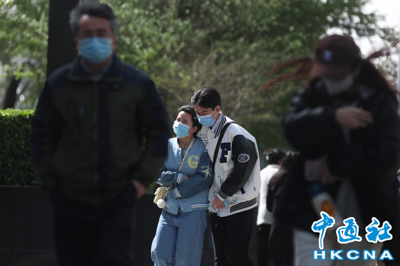 •   4月11日,北京遭遇大風和沙塵天氣,市民風中出行。北京市氣象台於10日20時升級發布了大風黃色和沙塵暴黃色預警信號。 香港中通社圖片