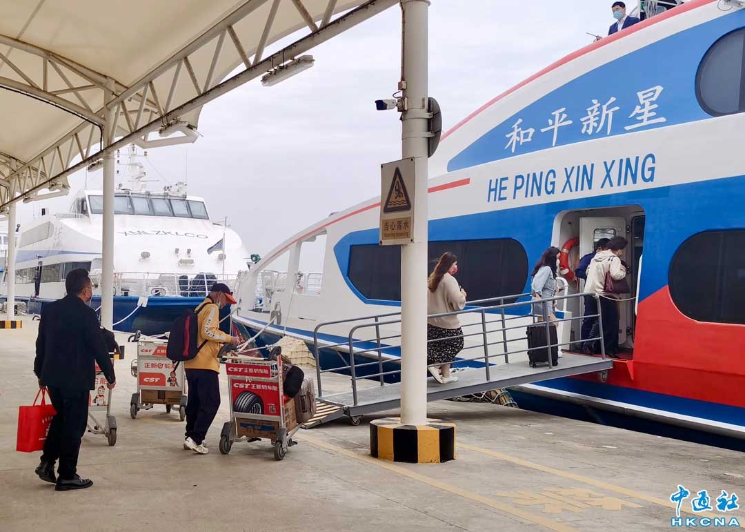 清明節將至,廈金航線迎來台胞返鄉祭祖高峰。廈門海事局4日透露,4月1日至3日,廈金航線出入境旅客人數達到4387人次,日均客流量超過1400人次,較3月廈金航線航班增加以來的日均客流量增長了56.95%。圖為4月3日,台胞乘坐廈門輪渡“和平新星”號從廈門啟程前往金門。香港中通社圖片