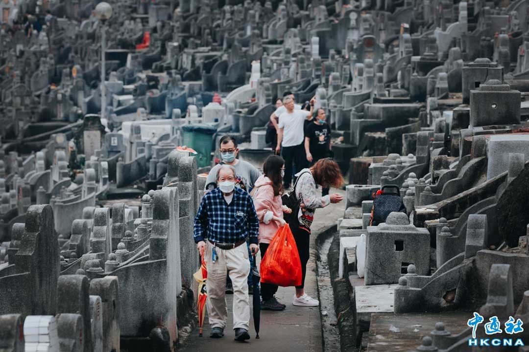 4月5日,香港大批市民到鑽石山墳場掃墓祭拜先人。這是香港全面復常後的首個清明節,前來掃墓的市民相比往年也比較多。 (香港中通社記者 許其皓攝)