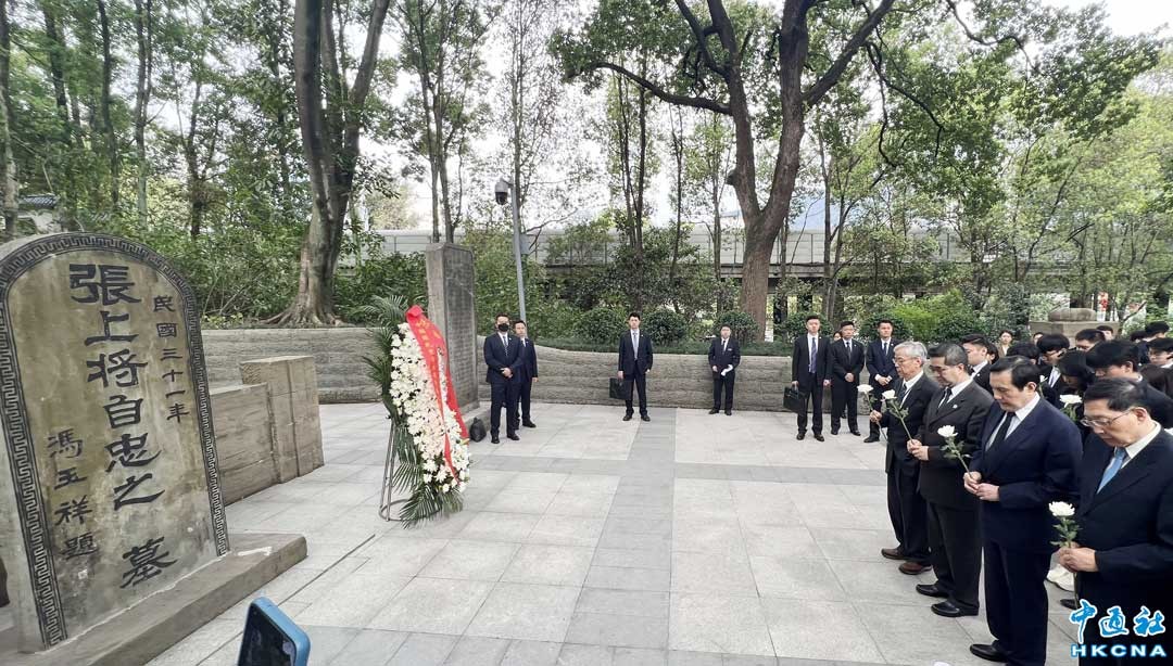 4月4日,中國國民黨前主席馬英九一行前往重慶梅花山麓的張自忠將軍墓憑吊。香港中通社圖片