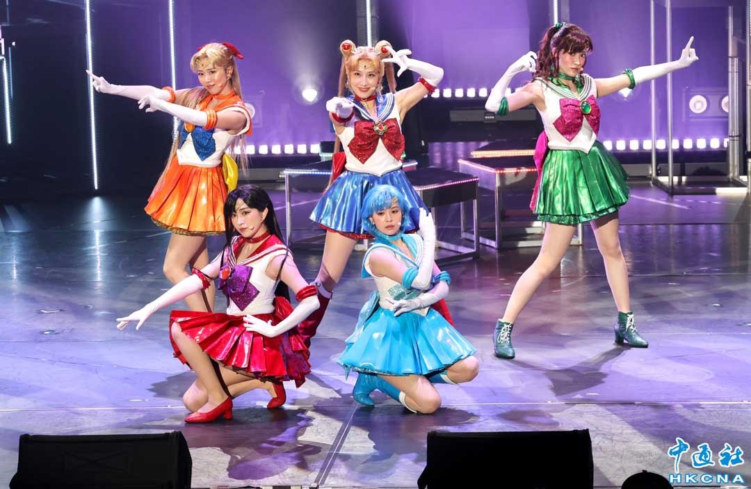 九O年代最具代表性的日本少女漫畫之一“美少女戰士”今年將首度以2.5次元音樂首次登陸台灣,懷舊動漫“美少女戰士”真人版音樂劇, 4月7日到9日在台北孫逸仙紀念館登場演出。 4月6日團隊的彩排畫面搶先曝光,除了還原造型,搭配舞台、燈光效果,讓不少人湧現回憶!香港中通社圖片