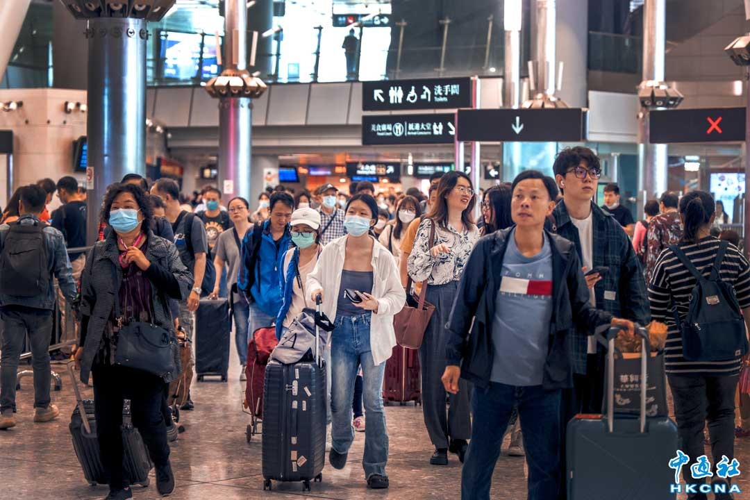 4月7日是香港復活節假期首日,高鐵西九龍站人頭攢動,客流順暢。 (香港中通社記者 許其皓攝)