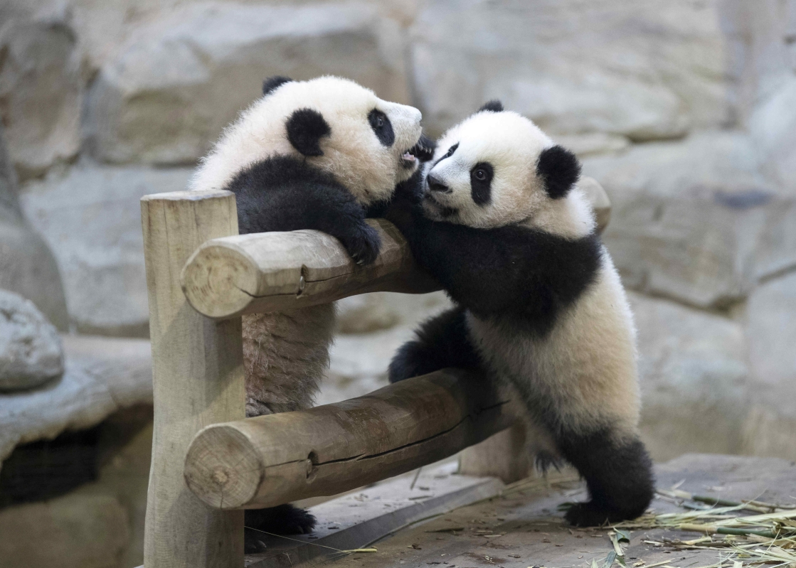 圖為2021年3月拍攝的“歡歡”和“圓仔”照片。(資料圖片) 中新社發 法國博瓦勒動物園 供圖 “歡歡”和“圓仔”2012年由成都大熊貓繁育研究基地來到博瓦勒野生動物園,開啟為期10年的中法大熊貓繁育合作計劃。由於新冠疫情的原因,“歡歡”和“圓仔”的去留在計劃期滿之際并未確定下來。 “歡歡”於2021年在法國產下一對雙胞胎幼崽。超過12萬名法國網友參與了博瓦勒動物園發起的大熊貓幼崽命名網絡投票活動,最終兩隻幼崽被命名為“歡黎黎”“圓嘟嘟”。中國奧運跳水冠軍張家齊、法國足球運動員姆巴佩共同為幼崽命名。