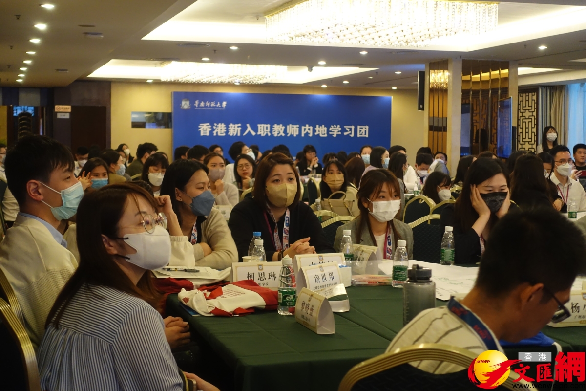 首期香港百名新入職教師赴華南師範大學研修學習。圖源:香港文匯網 學習團的香港老師中多為年輕面孔,不少人是疫後首次踏足內地,對於此次學習團的安排期待滿滿。本次學習團還特別邀請30位廣州新教師參與交流。