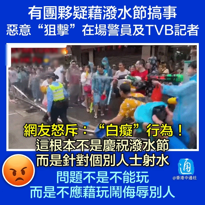 假潑水,真搞事?有團夥潑水節惡意狙擊警察及tvb記者分享到: