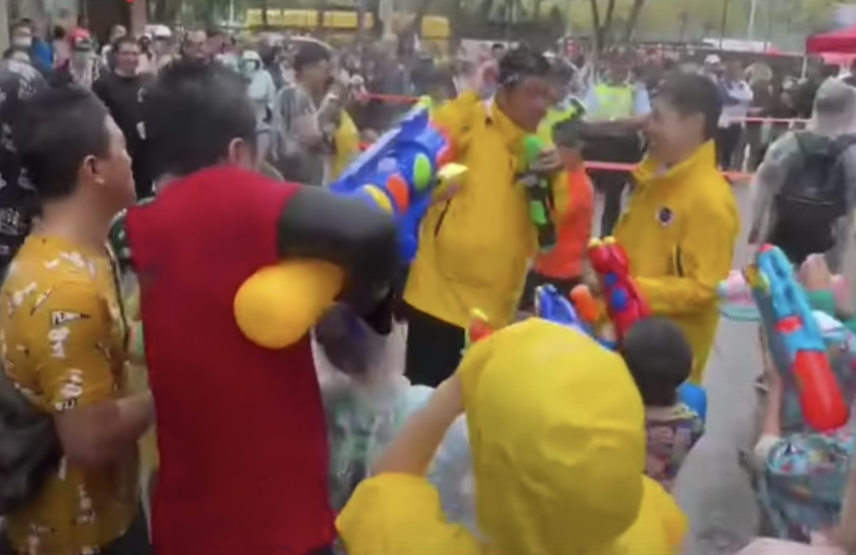 香港新聞網4月12日電 上週日(4月9日)恰逢泰國潑水節,香港多區舉辦潑水節活動。本是一個開心的日子,卻有團夥疑似藉潑水搞事,惡意“狙擊”在場警員及TVB記者! 日前一個名叫Bravedogdog的帳戶在社交平台發布一段潑水節視頻,視頻中,一班號稱“香港新秩序”的團夥在九龍城潑水活動現場用水槍“圍攻”在場維持秩序的警員及TVB記者。