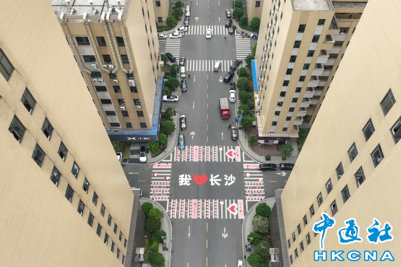 •   4月12日,湖南長沙一產業園內的粉紅愛心斑馬線顯得格外醒目。該斑馬線面積達140平方米,其設計採用了春天櫻花的顔色,繪有愛心和“我愛長沙”的視覺效果,為單調的馬路帶來活力。 香港中通社圖片
