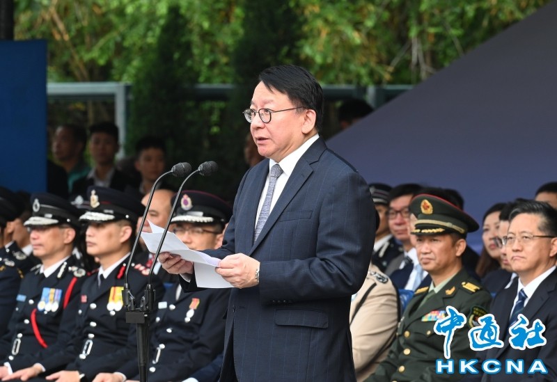 香港新聞網4月15日電 今日(15日)是“全民國家安全教育日”,香港保安局帶領轄下紀律部隊及各紀律部隊青少年團隊,聯同其他青少年制服團體,早上在香港警察學院舉行升旗儀式。政務司司長陳國基主禮,保安局局長鄧炳強、警務處處長蕭澤頤、香港特區維護國家安全委員會秘書長區志光等官員亦有出席。 陳國基致辭時表示,今年是香港國安法實施後的第三個“全民國家安全教育日”,以“國家安全穩定繁榮基石”為主題。他指出,“全民國家安全教育日”是推動國家安全教育的重要環節,旨在提高全民國家安全意識,營造維護國家安全的濃厚氛圍,同時加深社會大眾認識國家憲法、基本法和國家安全的認識,加強國民身份認同及奉公守法意識。