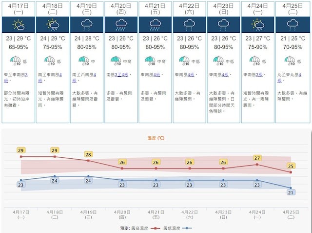 香港新聞網4月16日電 這個週末香港迎來晴朗炎熱天氣,天文台總部15日週六錄得攝氏30.6度,創今年氣溫新高。16日炎熱天氣持續,市區最高29度。不過下周即將迎來二十四節氣的“穀雨”,香港天氣變得不穩定及有雷雨。天文台預測由周二(18日)起,連續八日都可能有雨,下周三起連續四天相對濕度高達95%。
