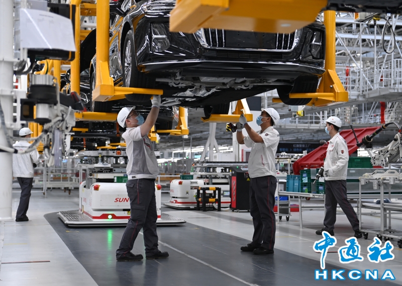 •   中國國家統計局18日公佈一季度國民經濟運行情況數據。北京學者認為,一季度內地經濟總體運行良好,開局反彈勢頭強勁,為提振市場信心提供利好訊息。資料圖為在吉林長春的中國一汽紅旗製造中心繁榮廠區,工人正在進行底盤合裝。 香港中通社圖片