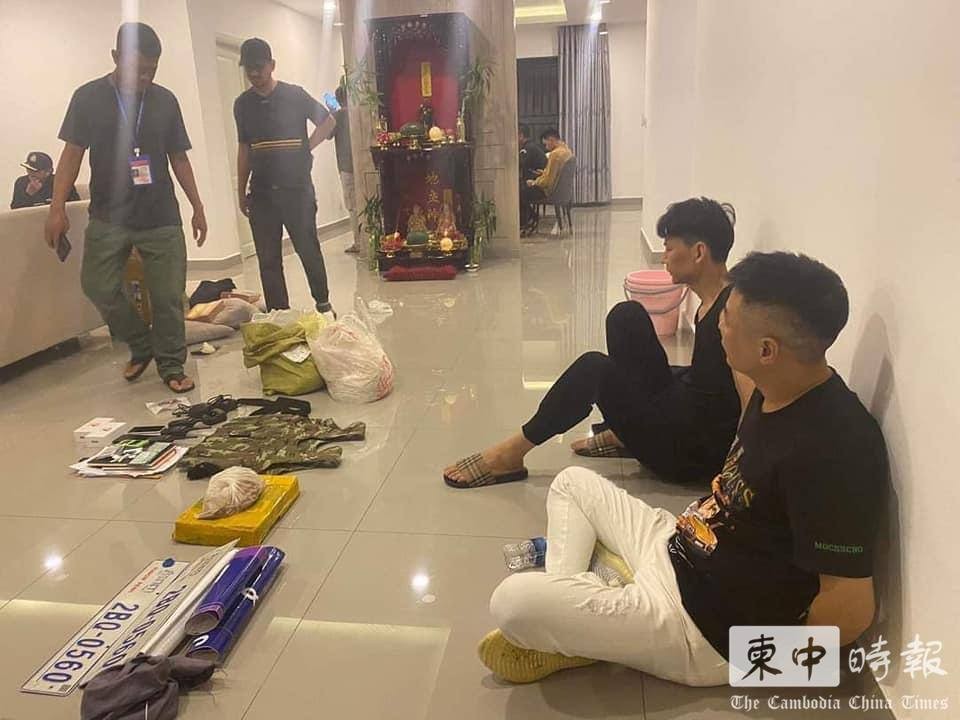 13日晚,柬埔寨警方分別在兩處小區抓捕涉案7名中國人。圖源:柬中時報 國家警察總署情報局局長洪鬆南證實,綁匪勒索贖金1000萬美元。在接獲家屬報案後,國家警察總署中央治安局和情報局和地方警局聯合執法,於13日晚分別突查位於60米路和50米路的兩處住宅,將綁匪一網打盡。