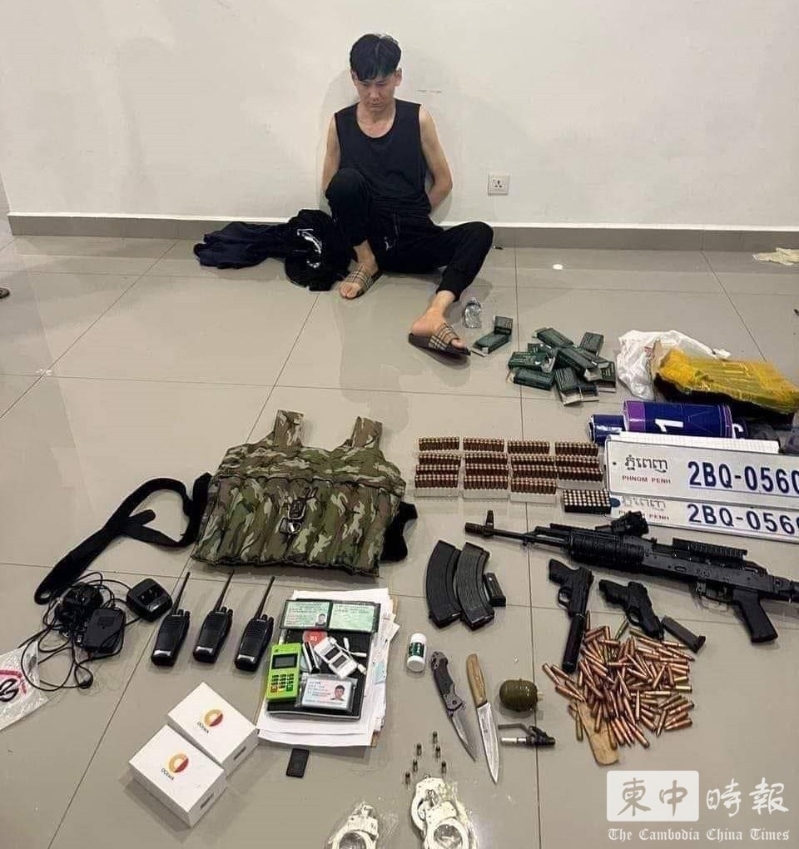 柬警方起獲涉案綁匪持有的大量武器。圖源:柬中時報 執法行動中,警方抓捕了涉案7名中國人,查獲兩輛埃爾法汽車、一把長槍、一把短槍、一枚炸彈、一批子彈、手銬、防彈衣和炸彈等一批作案工具。 針對近期惡性案件頻發,一位在柬華商表示,由於早前疫情影響,導致大量偷渡前往柬埔寨的中國人在柬失業。綁匪多為染上毒品或賭博欠下高利貸走投無路,從而靠敲詐勒索掙快錢。綁架團夥大多是從電騙案件頻發的西港轉移到金邊地區的。(完) 【編輯:王軼南】