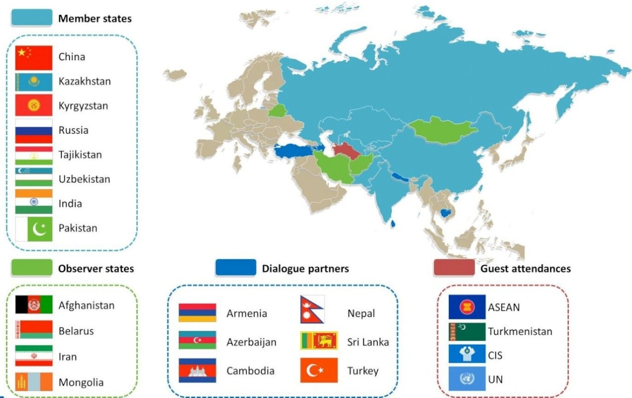 上海合作組織成員國分佈圖。圖源:網絡 此外,上合組織有4個觀察員國,分別是阿富汗、白俄羅斯、伊朗和蒙古;有14個對話夥伴,分別是阿塞拜疆、亞美尼亞、柬埔寨、尼泊爾、土耳其、斯里蘭卡、埃及、卡塔爾、沙特阿拉伯、巴林、馬爾代夫、阿聯酋、科威特、緬甸。 去年9月,印度接任上合組織輪值主席國。印度會否邀請巴基斯坦參會成為各方關注焦點。在巴方證實參會後,印度媒體給予了積極評價,這標誌著兩個“老對手”的關係可能會解凍。《今日印度》稱,這將是自巴基斯坦前總理謝里夫2014年前往新德里參加印度總理莫迪就職典禮以來,時隔9年首次有巴方重要官員訪問印度。 美國有線電視新聞網(CNN)也稱,這將是兩個有著長期緊張關係歷史的擁核鄰國之間的重大外交突破。報道中,CNN還提到了中國在上合組織中的影響力以及中巴友誼。