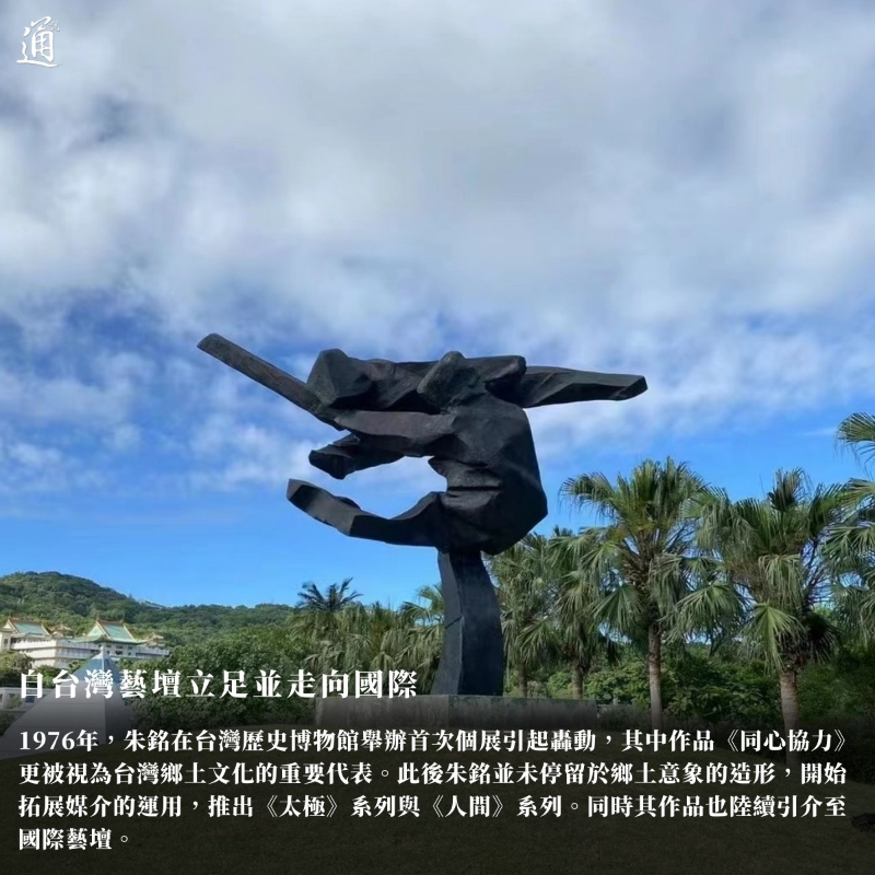 香港新聞網4月25日電 台灣知名雕塑家朱銘於2023年4月22日夜裡在家中辭世,享壽85歲。 師承楊英風,朱銘於30歲時踏入藝術創作領域。其作品風格融合傳統木雕與現代雕塑的精神,更帶有濃厚的台灣鄉土情懷,被視為當時台灣鄉土藝術的重要代表。朱銘不僅引領台灣藝術創作領域的發展,透過作品《太極》系列與《人間》系列,朱銘更走向世界,於國際藝壇間擁有豐碩的展出經歷。 朱銘認為,自身的成就來自於台灣社會。1999年,其以“種活藝術種子”的理念於新北市金山區創立朱銘美術館,將自身的藝術成就,轉化為回饋社會的能量。 如今逝者已矣,然而這些藝術作品,將長留在人們的生活和心海之中。