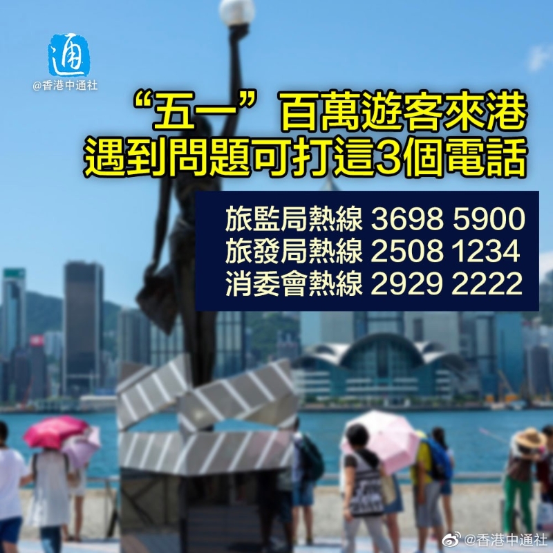 “五一”百萬遊客來港 遇到問題可打這3個電話分享到: