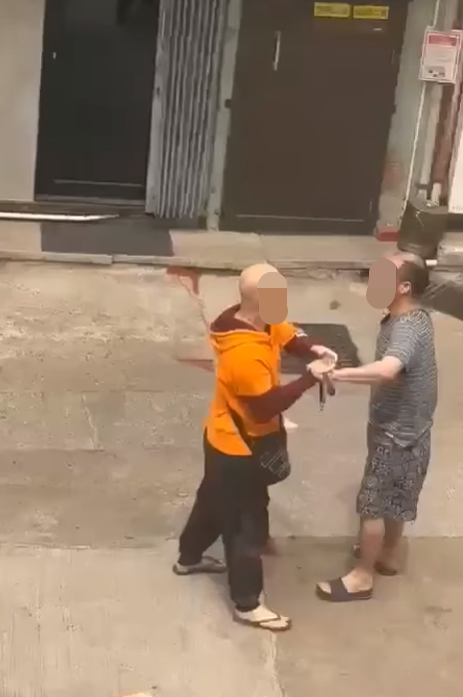 兩男長洲街頭推撞。網上影片截圖 現場是長洲大新後街90至272號,今日(27日)早上近11時,一名52歲姓李男子與一名43歲姓羅男子發生爭執。期間李男被推倒地上,頭部受傷。羅男見狀踢向其頭部後逃離現場。 李男昏迷由救護車送院,經搶救後證實不治。警方經調查後,於下午1時許尋獲羅男,並以涉嫌“謀殺”將其拘捕,帶返警署扣查。 根據網上流傳現場片段可見,當時李男身衣橙衣,與羅男在街頭爭執並爭奪單車鎖鏈。據報,兩人均為長洲居民, 互相認識。當中疑兇花名“細舊”,有三合會背景及吸食冰毒習慣。警方仍在調查案件。(完) 【編輯:孟宜君】