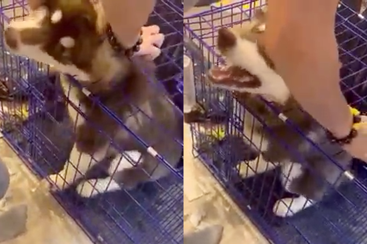 雪橇犬被夾頸險窒息 。影片截圖 動物義工組織“四條腿街坊福利會”日前接獲一段懷疑虐狗影片,遂於社交平台公開求助。影片長約13秒,可見一隻年幼的雪橇犬被困在狹小的鐵籠內,期間一名男子雙手用力捉緊小狗的頭部並扯向籠邊位置,再把上揭式的鐵籠蓋關上,緊緊壓向狗隻的頸部。狗隻被壓至雙眼瞪直,發出辛苦的喘氣聲,似乎快要窒息。 影片隨即引起關注,動物女義工事後表示,警方已經就事件立案,並拘捕涉案者,狗隻亦已交予隻則交予愛護動物協會跟進。 警方回應傳媒查詢時表示,田心警署於本月3日凌晨約1時,接獲一名50歲姓陳女子報案,指她留意到網上片段,片中有一名男子與一名女子爭執,其間懷疑有一隻狗隻被人不恰當對待。人員經調查後,在插桅杆村拘捕一名22歲姓黃男子,他涉嫌“殘酷對待動物”,案件交由沙田警區重案組第一隊跟進。該名被捕男子現正被扣留調查。單位內兩隻狗隻交由相關機構檢走作進一步檢查。(完) 【編輯:孟宜君】