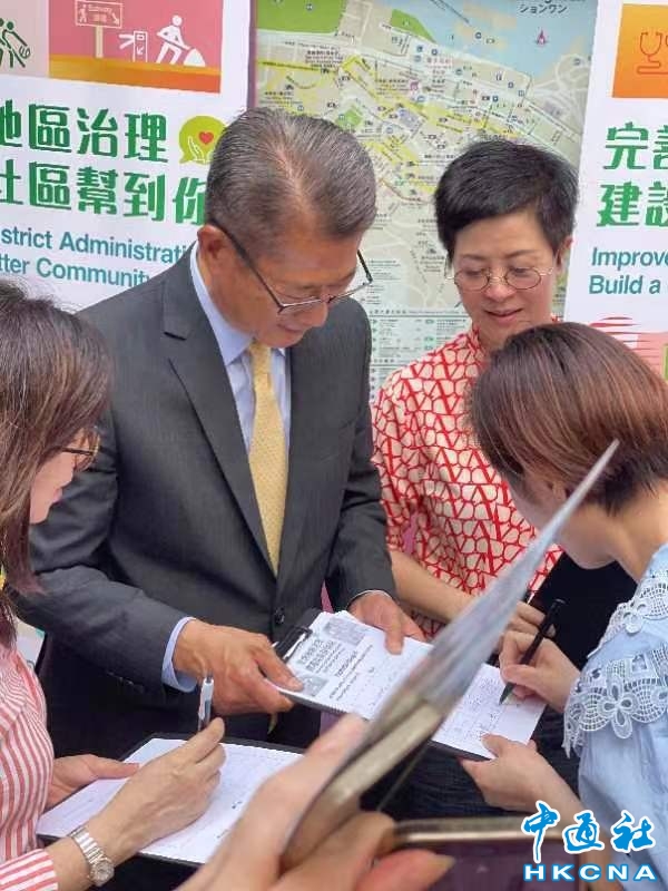 香港特區政府一眾官員到街站簽名支持“完善地區治理”分享到: