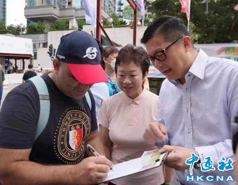 鄧炳強局長在街站簽名支持“完善地區治理建議”