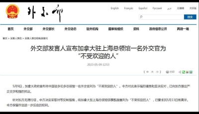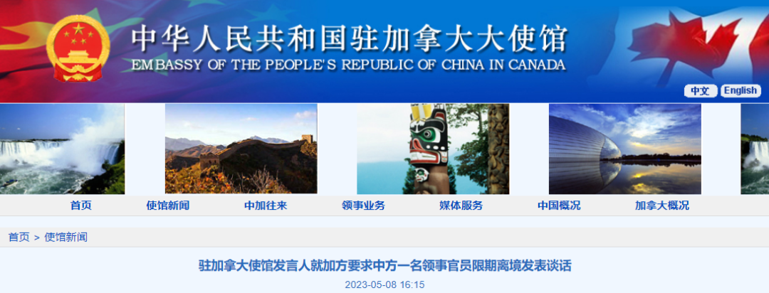 加拿大宣布中國一名領事官員“不受歡迎”,我使館回應分享到: