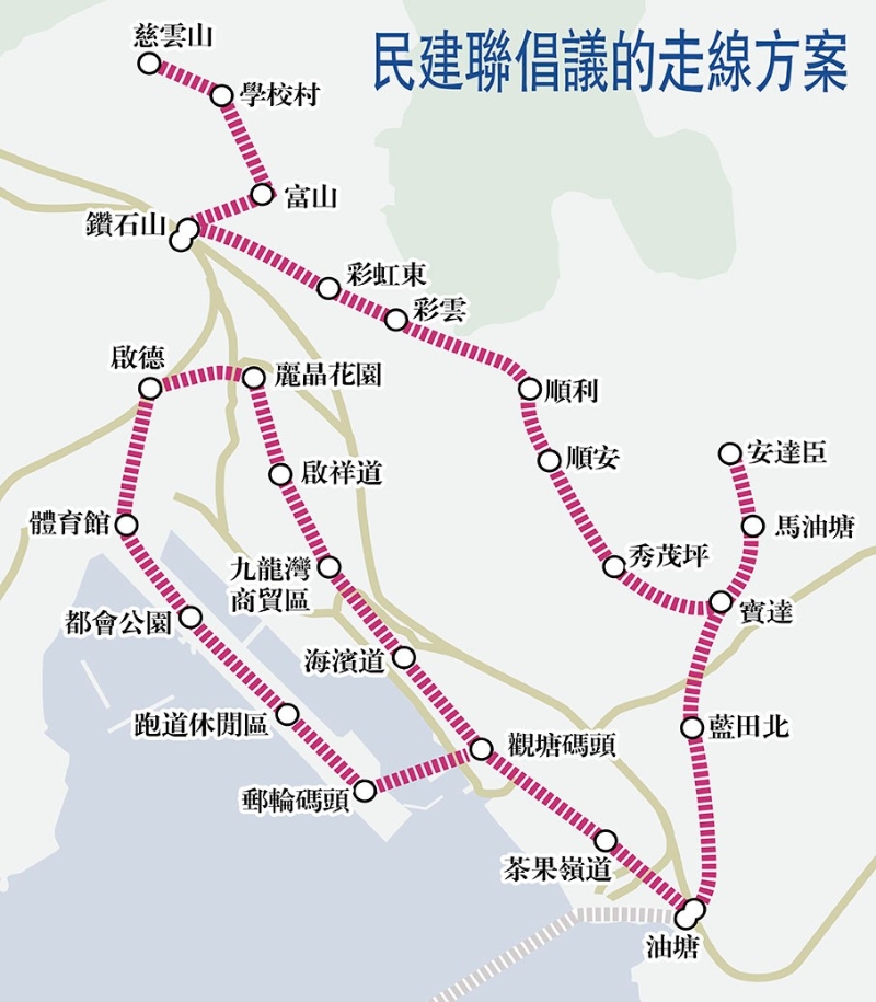 民建聯倡議的走線方案 民建聯9日召開記者會,交代參觀考察內地城市後的得着。立法會議員李慧琼認為,政府所提“高架無軌捷運系統”的走線並無考慮啟德區,未能滿足該區居民的需求。政府擱置啟德區的輕軌計劃,加上簡約公屋的興建加重當區公共交通系統的負擔,亦沒有最大化發揮九龍東“CBD2”的作用。 民建聯九龍東立法會議員顏汶羽表示,早前到內地多個城市考察後,發現不同的捷運模式都各有好處和局限。例如深圳坪山雲巴、湖南株洲智軌等均使用電池行駛,成本效益上符合香港特區政府的要求,雲巴最多可設8卡 ,共載560人;智軌優勢是使用膠輪無軌,無需設置高架車道便可以運行;而快速公交的優點是爬坡能力強,能在香港半山地區運行。 他建議香港特區政府按九龍東中各區的地勢、人口密度、交通需求及路面特性,混合採用雲巴、智軌和快速公交混合的捷運系統,例如雲巴橋面僅闊5米,亦不會與路面車輛爭路,適合人口密集的觀塘至啟德區,有助於疏導交通;而山多的東九龍半山區,可以採用爬坡能力強的快速公交。 民建聯建議,在“高架無軌捷運系統”彩虹至寶達走線之上,新設一個位於鑽石山的車站,通過地下通道與現時的鑽石山站連接,並接駁至慈雲山、學校村、富山、馬油塘、安達臣(總站)。 另一支線則服務啟德至觀塘一帶為主,與現有啟德站接駁,東向麗晶花園、啟祥道、九龍灣商貿區、海濱道、觀塘碼頭、茶果嶺道,與現行觀塘線油塘站接駁後再往藍田北,繼而接駁至寶達。 為了收集市民意見,民建聯亦在各區設置街站與召開居民大會,呼籲政府需盡快回應市民期望。社區幹事郭必錚表示,街坊聽到新方案時感振奮和期待,認為30年來尚未解決的交通問題終於“見到曙光”。 李慧琼表示,民建聯將於本月底至下月初,與政府部門詳細交流走線方案,期望政府能充分考慮,解決困憂居民多年的交通擠塞問題。 (完) 【編輯:王軼南】