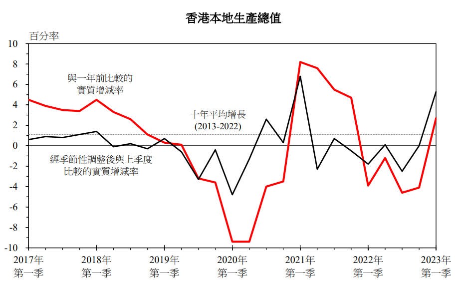 香港新聞網5月13日電 香港特區政府昨日(5月12日)公佈今年第一季經濟情況及全年本地生產總值和物價最新預測,全年增長預測維持在預算案中公佈的3.5%至5.5%,如果目前經濟復甦的動力持續,增長率預料會靠近預測區間的上限。