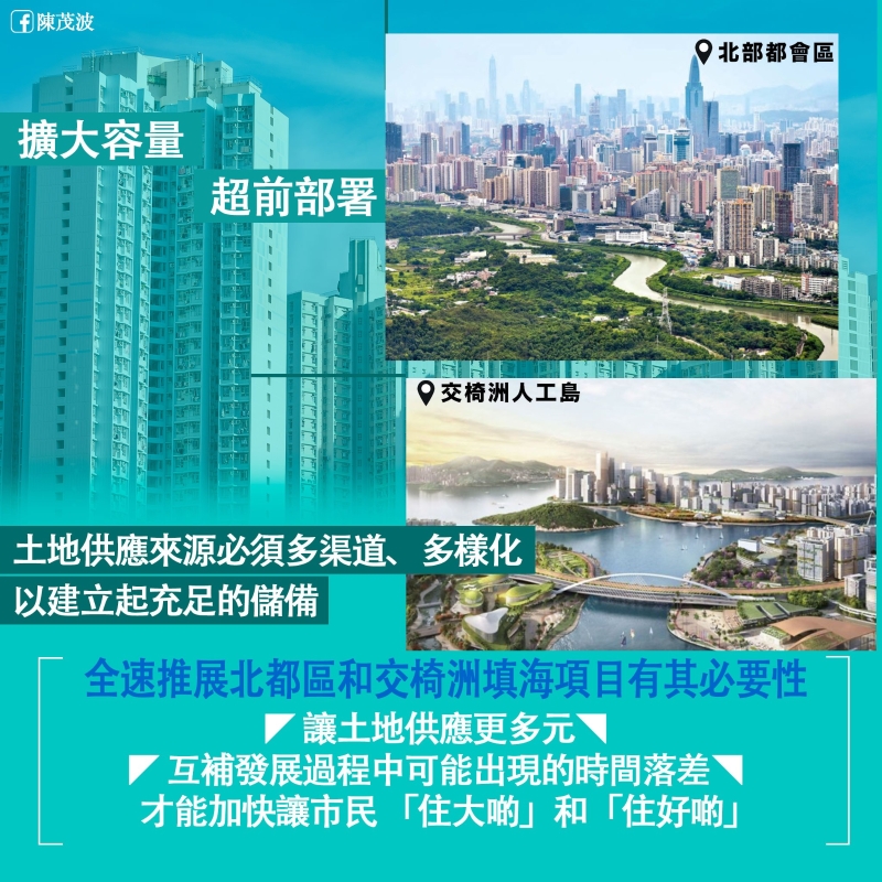陳茂波網誌圖片。 至於交椅洲人工島填海計劃,他指,有三大重要定位 : 第一、它將成為一個主要住宅土地供應來源,提供約二十萬個住宅單位,可容納50至55萬人居住;第二、它將會發展為香港第三個核心商業區,提供合共約500萬平方米商業樓面;第三、它將連通港島、大嶼山、機場和港珠澳大橋口岸和新界西,以至將來通往深圳前海的鐵路,為市民提供更便捷暢達的交通網絡,便利市民出行,也有利經濟活動。當人工島發展全面成熟後,相關經濟活動預計可為香港帶來每年約2,000億元的增加值,相等於本地生產總值約7%。可以說,這1,000公頃的“人工島”發展既關乎經濟民生,亦是為了構建更便捷的交通基建網絡,縮短市民出行、上下班和返學放學坐車的時間,方便工作、學習和生活。這項目填海得來的私人住宅和商業地皮,粗略估計可帶來7,500億元的賣地收入,單計土地收益已超出其建設成本。而當中尚未計及便捷交通推動沿綫和其他區域的發展和上段所述的經濟活動效益。此外,面對市區樓宇老化的情況,我們需要有更多鄰近市區的調遷空間以加快推動市區重建。 陳茂波提及,社會對這項目有不同意見,在剛完結的公眾諮詢中就收到近8,000份公眾意見,當中約六成支持項目。持不同意見的關注點包括工程進度及環境影響等。特區政府會充份考慮相關意見,並聚焦做好發展規劃。至於有意見關注整個項目對公共財政的影響,我想特別指出,這個項目具備很好的向市場集資條件,所需資金將有較大部分通過市場募集。事實上,不少企業或機構都認同這項目的發展潛力,相繼表達希望參與其中,當中亦有建議可透過不同形式的結構融資或公私型合作發展模式,讓項目融資可有更大彈性和更多選擇。此外,我們還可以發行兼具零售部分的債券,為項目融資的同時也讓市民分享穩健的投資回報。 他強調,填海是增加本港可供發展大型土地的有效途徑。事實上,香港受制於山多平地少的地理環境,填海一直是開拓發展用地的主要來源,本港近七成人口是居住在主要靠填海而來的新市鎮。不過,自回歸以來,本港填海速度大幅放緩,現時填海所得土地只佔本港土地面積的7%,遠低於新加坡的20%。土地供應持續不足影響深遠,香港人均居住面積中位數僅為170平方呎,比上海及新加坡少三分之一,也比深圳低四成。香港實在有迫切需要透過填海及其他土地開發,大幅增加土地供應。 陳茂波指,總括而言,推展北都和交椅洲填海項目均有其必要性,不但能讓土地供應更多元,並能互補各個項目在發展過程中可能出現的時間落差。必須多管齊下、全力造地,才能加快讓市民“住好點”和“住大點”。(完) 【編輯:孟宜君】