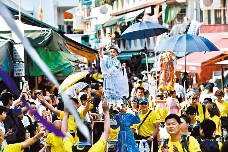 長洲太平清醮飄色巡遊,將於下周五(26日)復辦。圖源:文匯網資料圖片 今年大會繼續安排小朋友扮演不同政治人物,包括有5歲女童扮演財務司司長陳茂波。黃成就指出,今年飄色不會涉及太多政治元素,至於扮演陳茂波的小童屆時會手棒黃金,寓意“財爺派糖”。另外今年亦會有反映公共交通加價、消防救援赴土耳其救災等主題扮演。他又說,關角色扮演只為市民發聲,不會踩到“紅線”。 有出售平安包的麵包店店主預料今年人流會有增加,相信生意會較去年增長約兩成。(完) 【編輯:孟宜君】