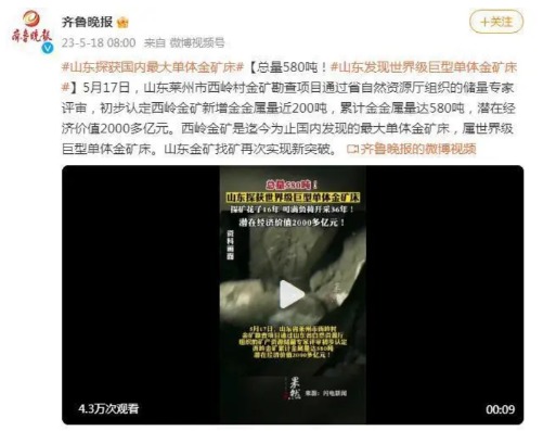 香港新聞網5月19日電 中國山東發現世界級大金礦的消息引發關注。該金礦位於山東萊州市西嶺村,初步認定西嶺金礦新增金金屬量近200噸,累計金金屬量達580噸,潛在經濟價值2000多億元。 綜合中國內地媒體報道,5月17日,山東省萊州市西嶺村金礦勘查項目通過山東省自然資源廳組織的礦產資源儲量專家評審,初步認定西嶺金礦延深有2000多米,局部厚度達67米,新增金金屬量近200噸,累計金金屬量達580噸,或可滿負荷開采30年以上。預估潛在經濟價值2000多億。至此,山東省萊州市西嶺金礦成為國內發現的最大單體金礦床,屬世界級巨型單體金礦床。 據瞭解,山東黃金礦產資源豐富,地質儲量居全國之首,是全國黃金產量第一大省。西嶺金礦位於山東膠西北萊州-招遠地區特大型金礦富集區,處於正在開采的三山島金礦深部,其北部毗鄰國內第二大單體金礦床三山島北部海域金礦。“三個金礦不僅單個金礦儲量大,還同屬三山島金礦帶。西嶺金礦本次在2017年3月山東省國土資源廳備案金金屬量382.58噸的基礎上勘查新增近200噸。相比於2016年發現的國內第二大單體金礦床-三山島北部海域金礦勘探項目(459.434t,平均品位4.23g/t),西嶺金礦床總儲量比前者多約120噸。 此次西嶺金礦增儲後,在三山島金礦帶不足20平方千米範圍已累計查明金礦資源量達1300多噸,在世界範圍內也極為罕見。 據山東黃金地質礦產勘查有限公司副總經理馮濤介紹:“該礦床規模大,品位高,預計可滿足生產規模達10000噸/日的特大型礦山三山島金礦連續滿負荷生產30年以上,預估潛在經濟價值2000多億元。”資源量大、經濟性好是西嶺金礦的特點。西嶺金礦主要礦體控制最大走向長1996米、最大延深2057米,礦體局部厚度可達67米,平均品位4.26克/噸。 西嶺金礦是深部找礦的典型代表,其資源量主要分布於-1000米到-2500米標高範圍內,是目前全國發現的深度最深的金礦。經過不斷攻關,山東探索建立了“階梯式”成礦模式和“熱隆-伸展”成礦理論,攻克了膠東深部金礦找礦關鍵理論技術這一世界性難題,并在西嶺金礦完成了“中國岩金勘查第一深鑽”。“整個施工鑽探工程量是180多個鑽孔,30多萬米。其中有一個鑽孔是4006.17米,這個鑽孔是開創了我國小口徑鑽探的先河。”馮濤說。 (完) 【編輯:錢林霞】